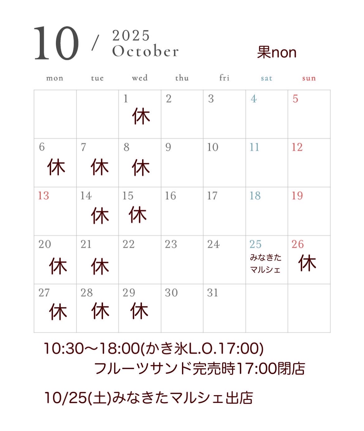 水・木・金・土・日 10:30 Open, 17:00 Close